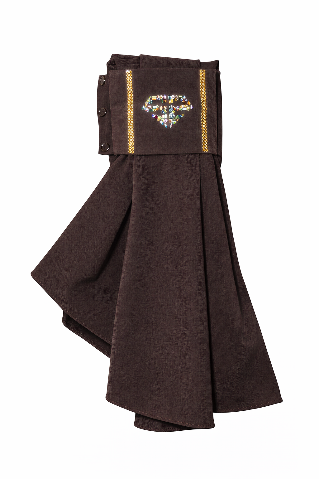The sides are finished with a delicate crystal mesh, adding a soft, luminous edge that catches the light in a sophisticated and understated way. At the centre, our signature logo is meticulously embellished with fine miniature crystals in carefully selected, multi-tonal shades. Each crystal reflects light differently, echoing the natural facets of a gemstone, distinctive, balanced, and enduring.